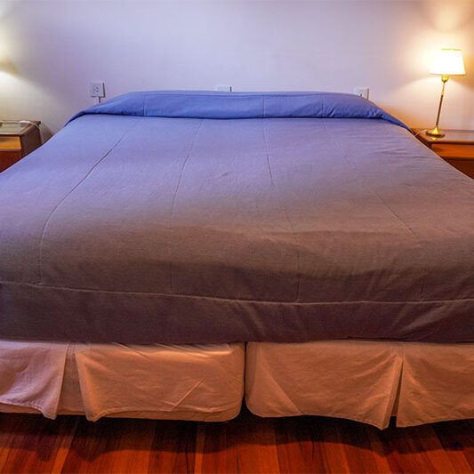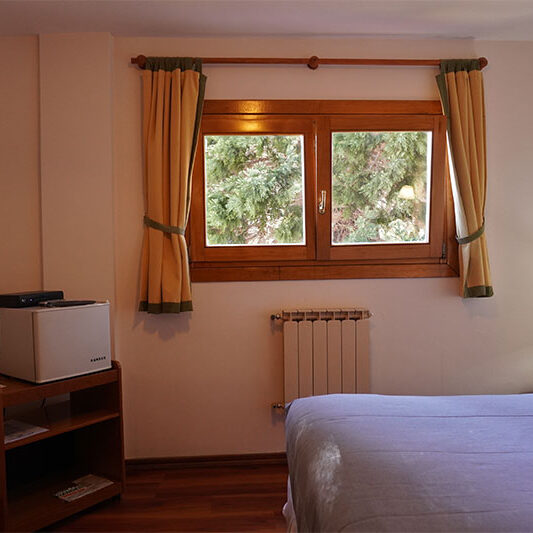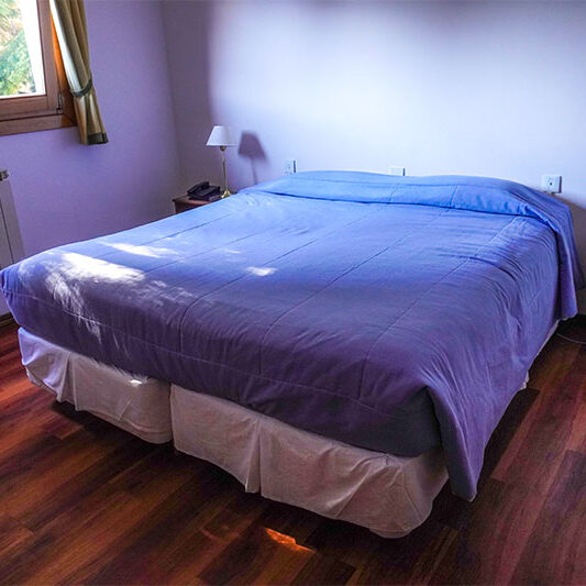 Esta habitación es tranquila y confortable con vista a nuestros jardines o a los bosques que rodean nuestro establecimiento. Ideal para un descanso en familia en medio de la tranquilidad que rodea nuestro establecimiento.